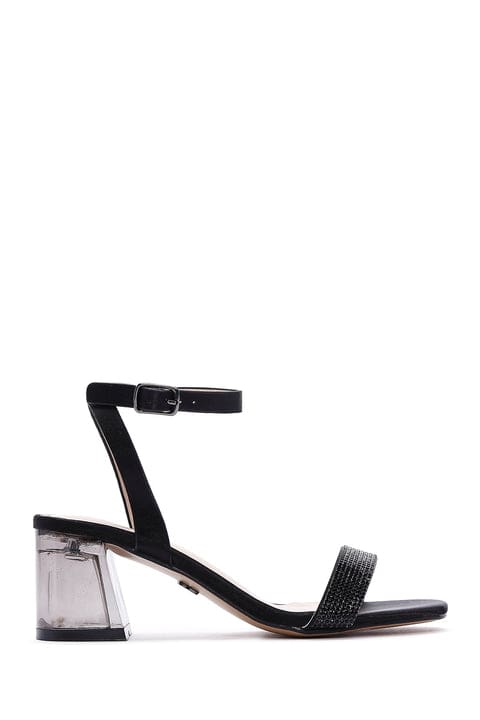 Kadın Siyah Bilekten Bantlı Şeffaf Topuklu Sandalet