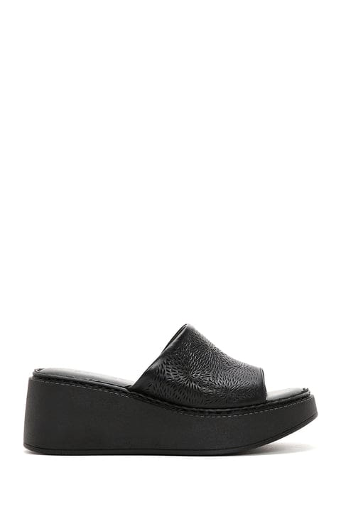Kadın Siyah Dolgu Topuklu Deri Comfort Terlik