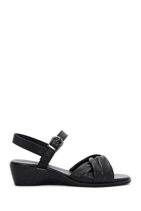 Kadın Siyah Deri Dolgu Topuk Comfort Sandalet