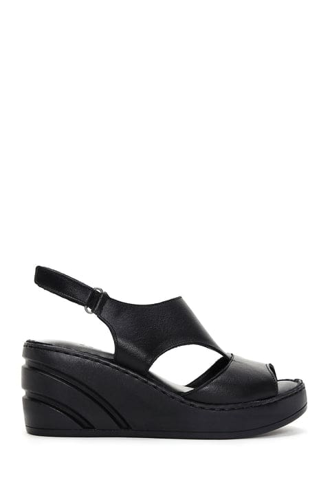 Kadın Siyah Deri Dolgu Topuk Comfort Sandalet