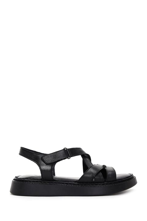 Kadın Siyah Bilekten Bantlı Deri Comfort Sandalet