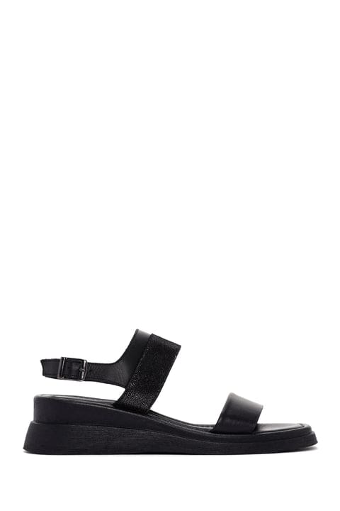 Kadın Siyah Bilekten Bantlı Deri Comfort Sandalet