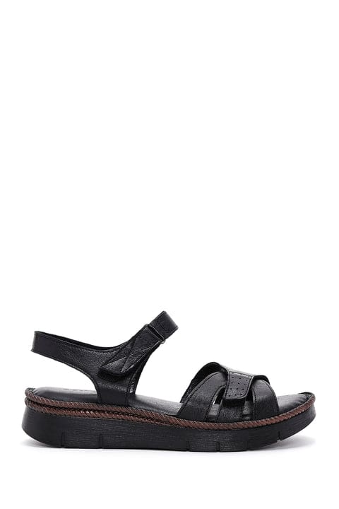 Kadın Siyah Bilekten Bantlı Deri Comfort Sandalet