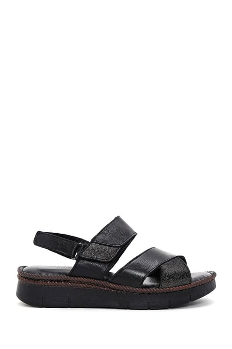 Kadın Siyah Bilekten Bantlı Deri Comfort Sandalet