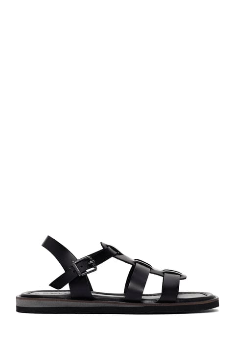 Kadın Siyah Bilekten Bantlı Deri Comfort Sandalet