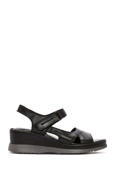 Kadın Siyah Kalın Tabanlı Bilekten Bantlı Deri Comfort Sandalet