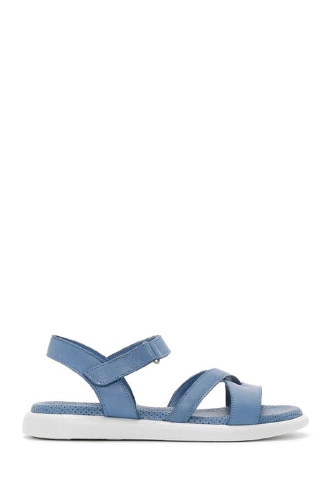 Kadın Mavi Bilekten Bantlı Deri Comfort Sandalet
