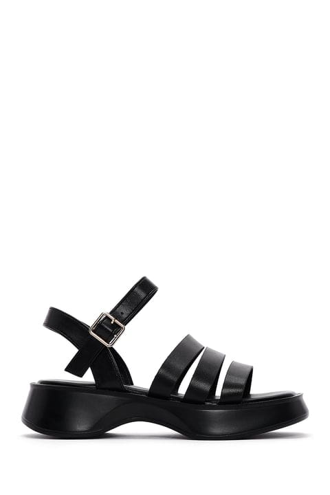 Kadın Siyah Bilekten Bantlı Kalın Tabanlı Comfort Sandalet