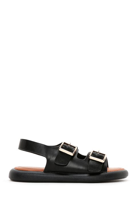 Kadın Siyah Çift Tokalı Comfort Sandalet