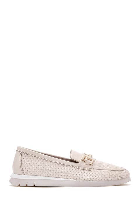 Kadın Krem Toka Detaylı Deri Comfort Loafer