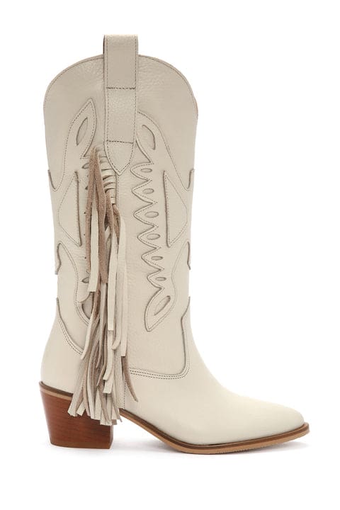 Kadın Krem Kalın Topuklu Deri Kovboy Bot