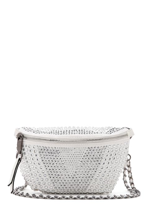 زیبا استایلر / فروشگاه / زنانه / کیف و اکسسوری زنانه / کیف کراس بادی زنانه / کیف صلیبی نگین داری بند بلند سفید زنانه دری مد
