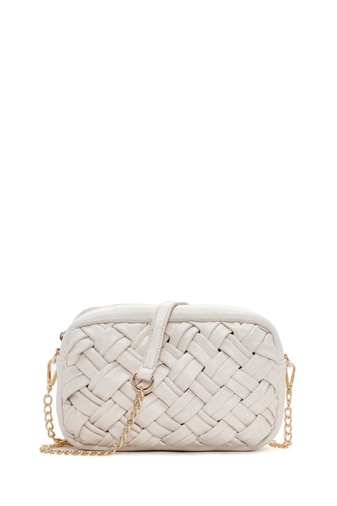 Kadın Krem Uzun Zincir Askılı Örgü Çapraz Çanta