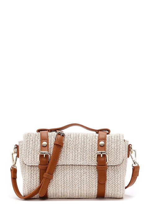 Kadın Krem Uzun Askılı Hasır Çapraz Çanta