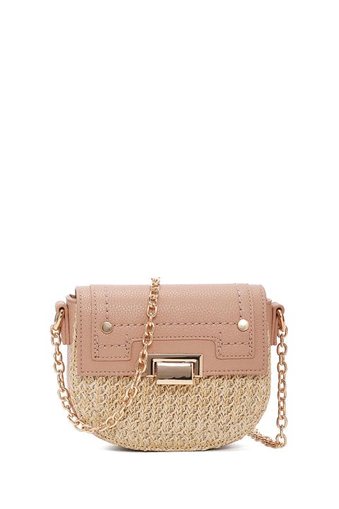 Kadın Pembe Uzun Zincir Askılı Hasır Çapraz Çanta
