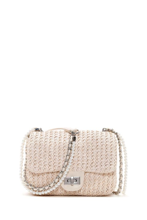 Kadın Bej Uzun Askılı Hasır Çapraz Çanta