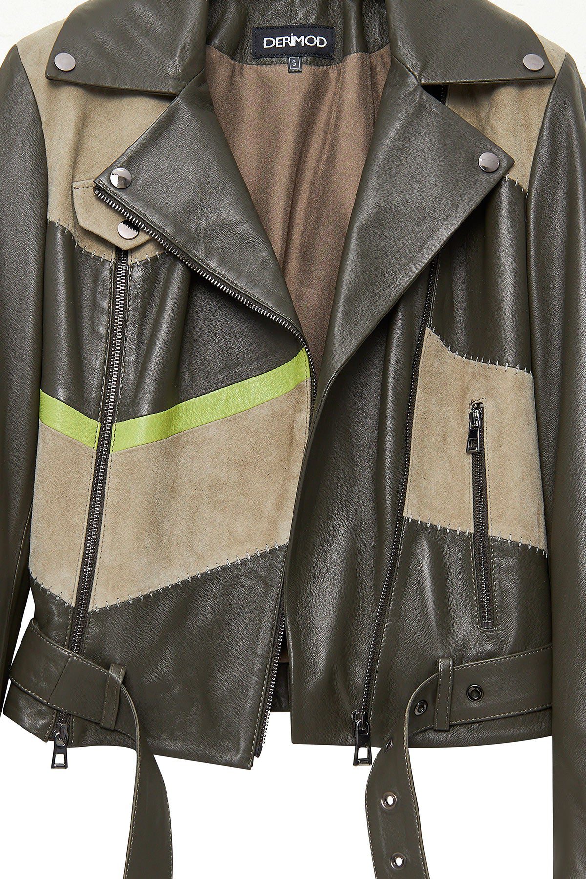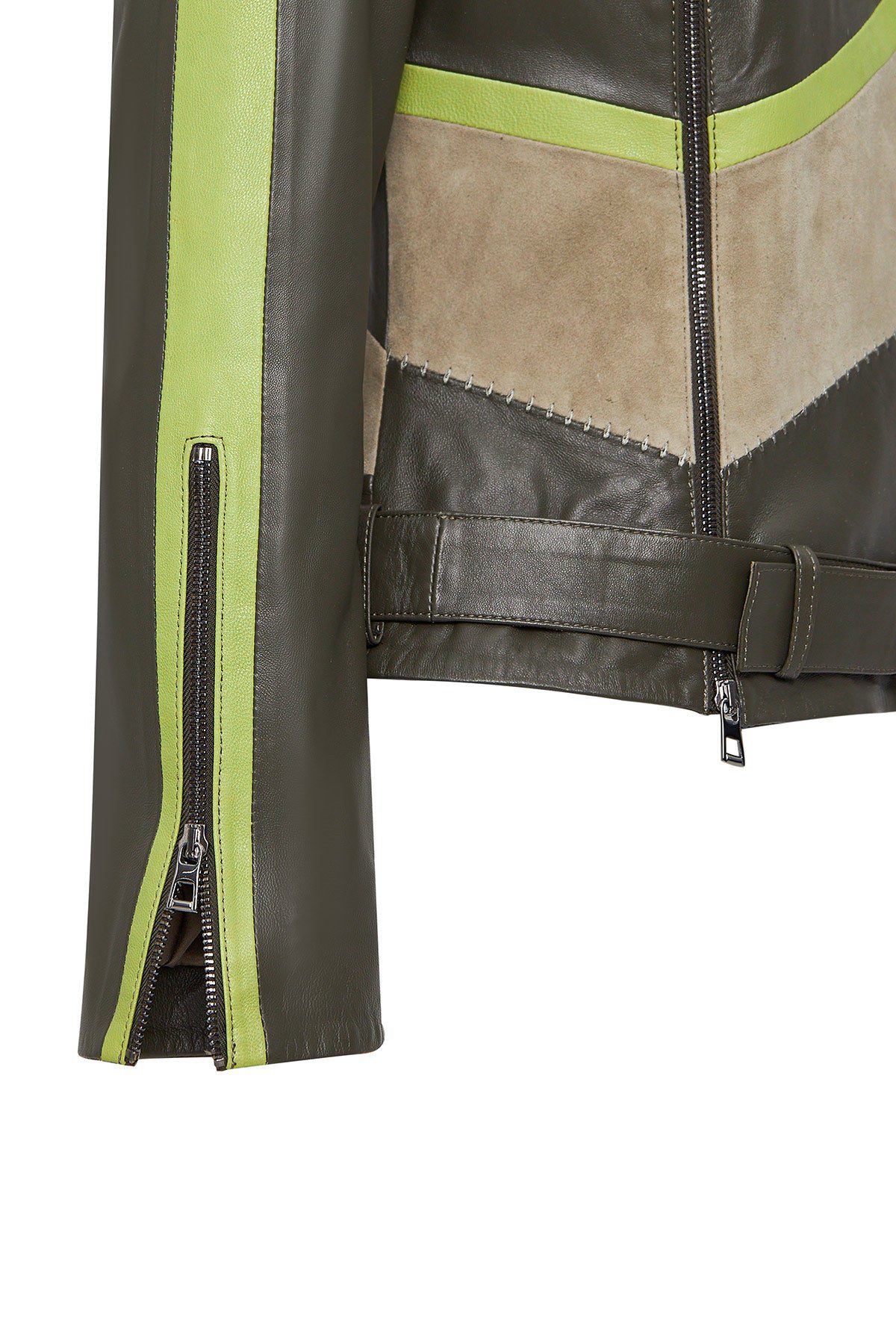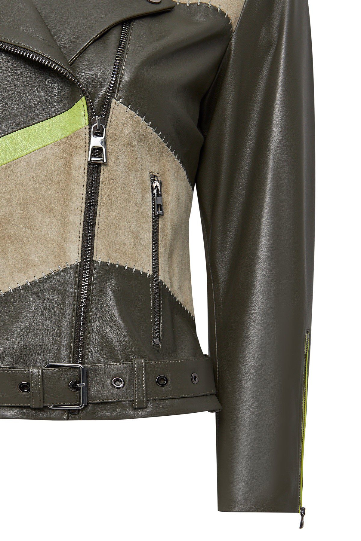 Madonna Kadın Yeşil Kruvaze Yaka Deri Ceket