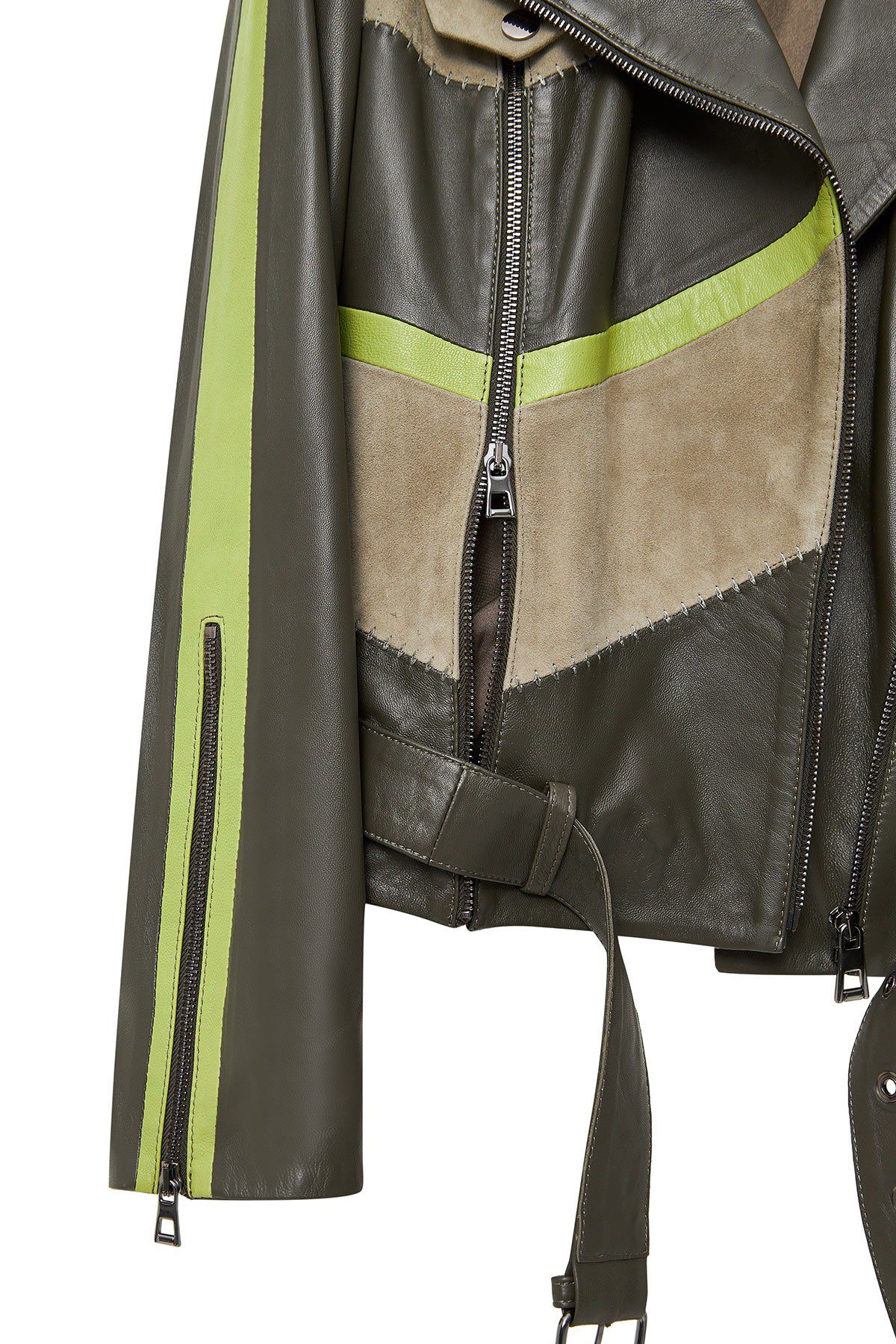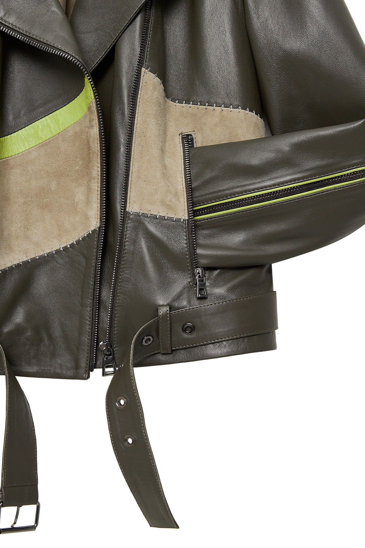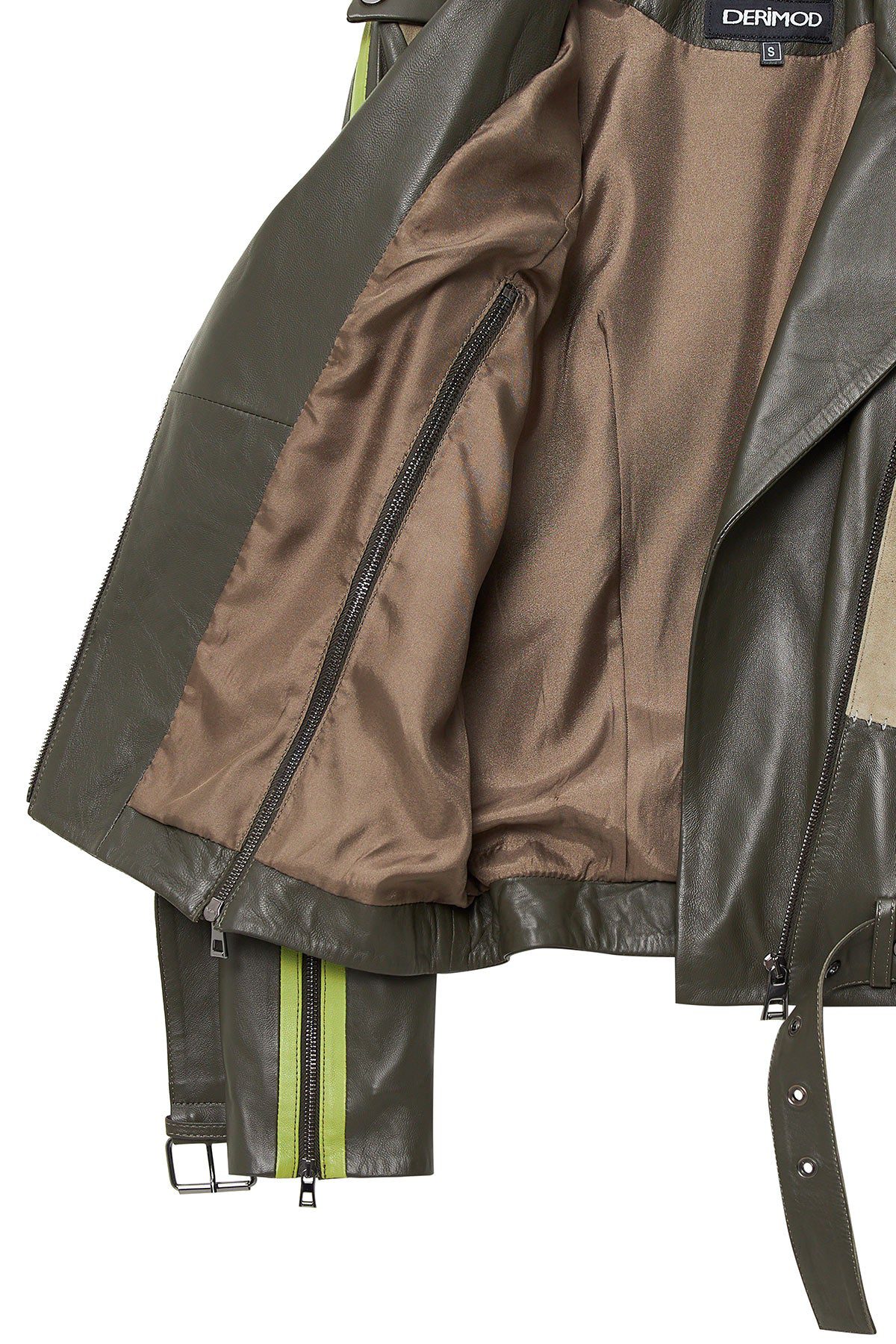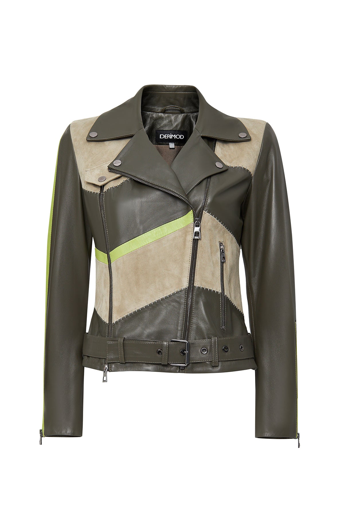 Madonna Kadın Yeşil Kruvaze Yaka Deri Ceket