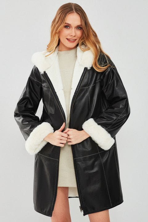 Verona Kadın Siyah Çift Taraflı Teddy Deri Kaban