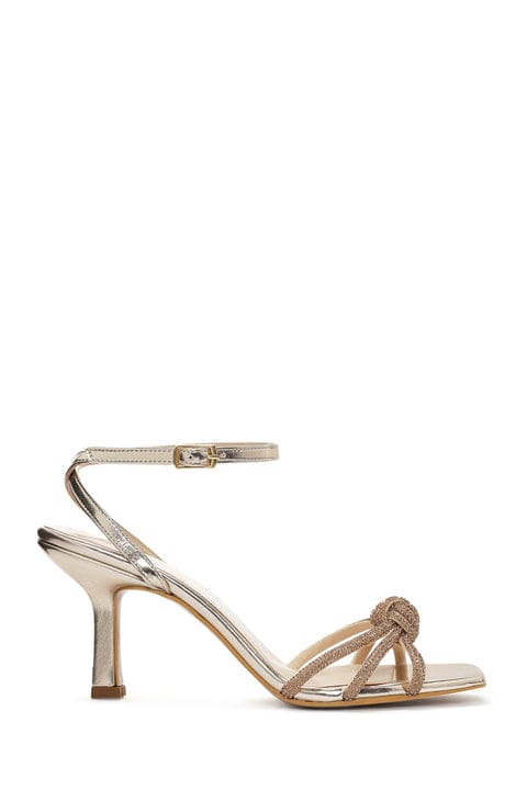 صندل پاشنه دار نگین داری مچ پا طلایی زنانه
