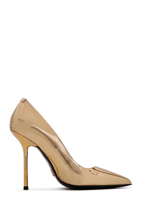 Kadın Altın Topuklu Rugan Deri Stiletto