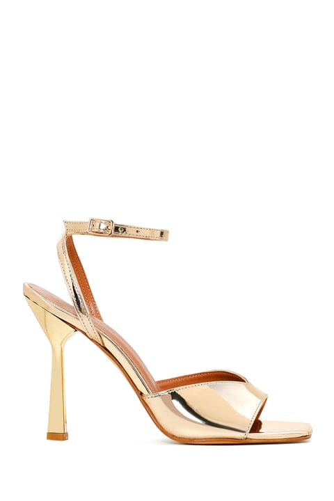 Kadın Altın Bilekten Bağlamalı Topuklu Sandalet