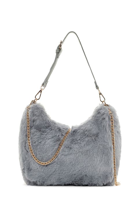 Kadın Gri Uzun Zincir Askılı Peluş Kol Çantası