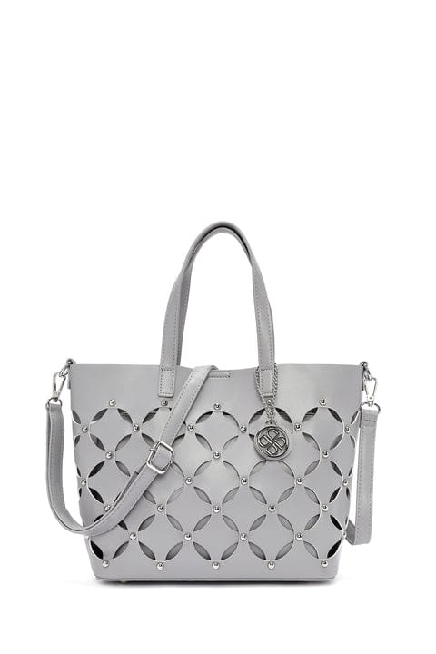 کیف دوشی کلاسیک بافته شده خاکستری زنانه دری مد