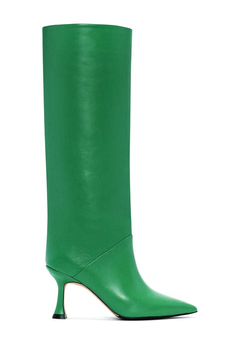 چکمه پاشنه دار چرم سبز زنانه دری مد