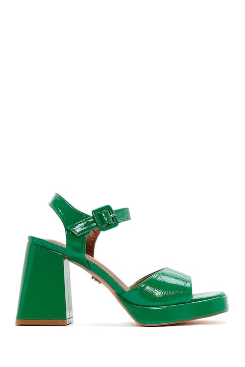 Kadın Yeşil Rugan Kalın Topuklu Sandalet