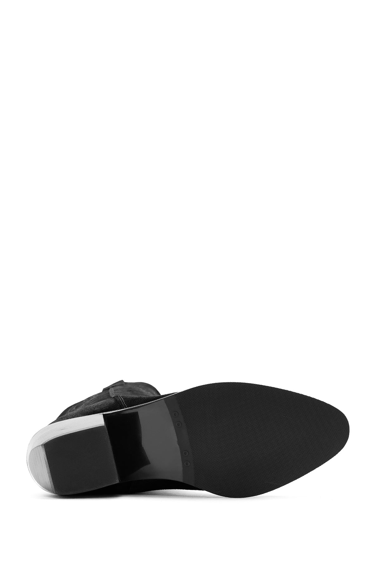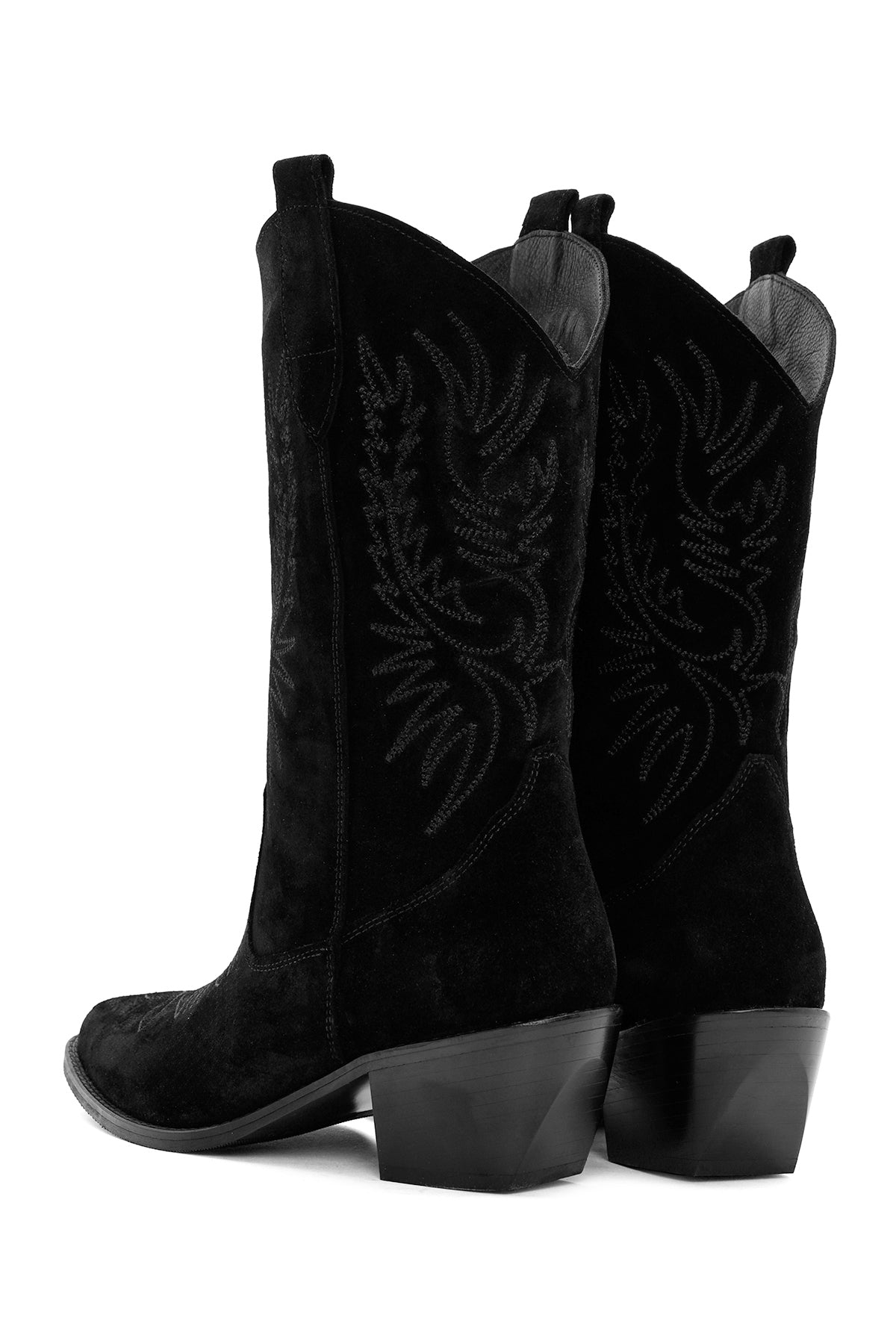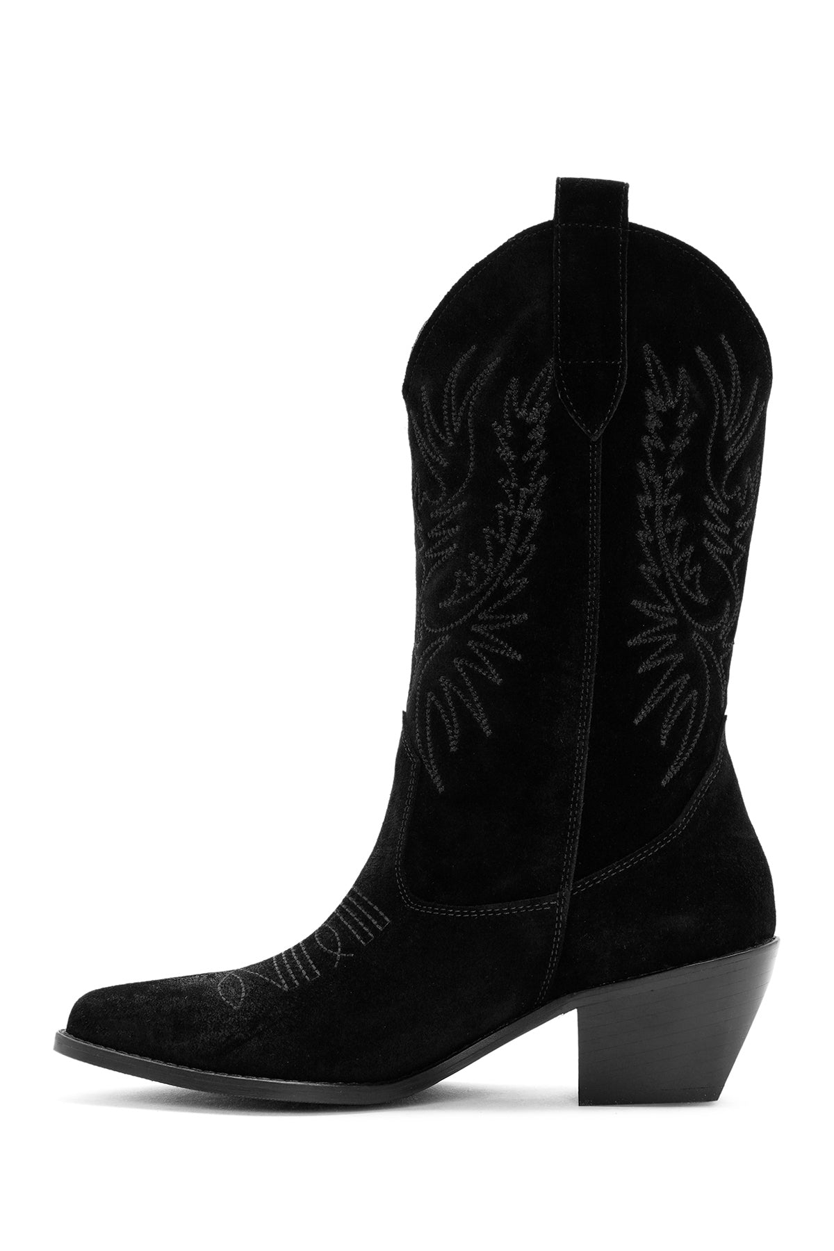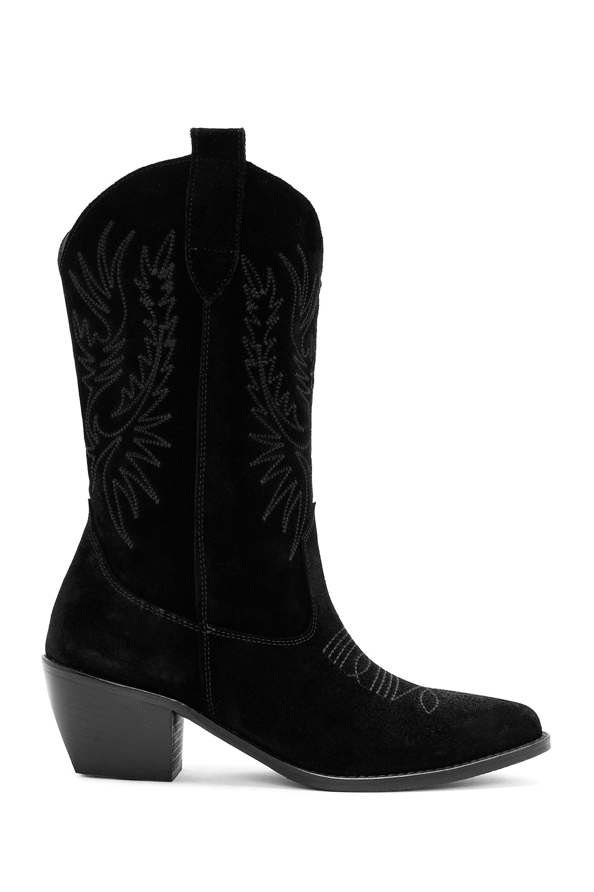 Kadın Siyah Süet Deri Topuklu Kovboy Bot