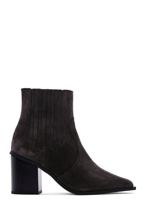 Kadın Antrasit Süet Deri Topuklu Kovboy Bot