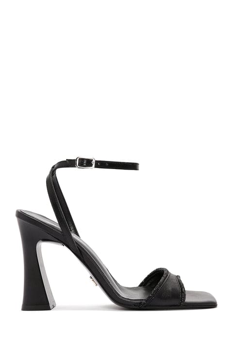 Kadın Siyah Bilekten Bantlı Yüksek Topuklu Deri Sandalet