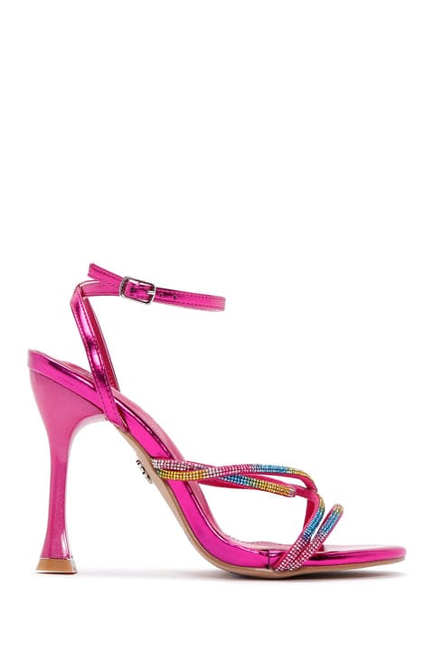 Kadın Pembe Taşlı Bilekten Bantlı Yüksek Topuklu Sandalet