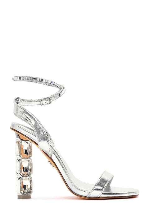 Kadın Gümüş Bilekten Bağlamalı Yüksek Topuklu Sandalet