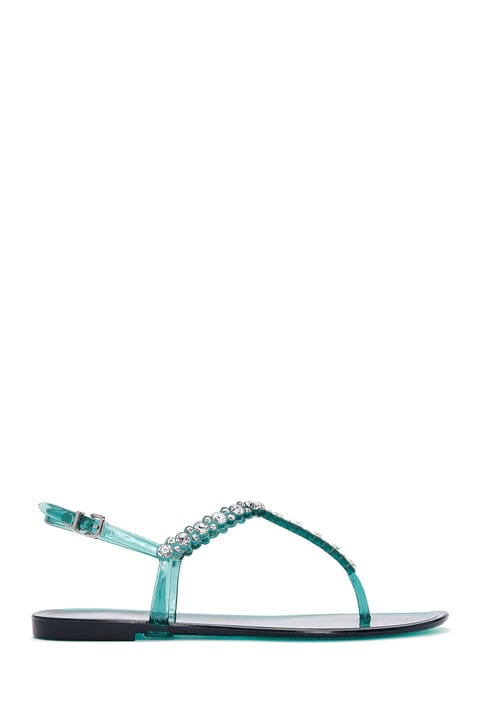 Kadın Mavi Bilekten Bantlı Taşlı Parmak Arası Sandalet