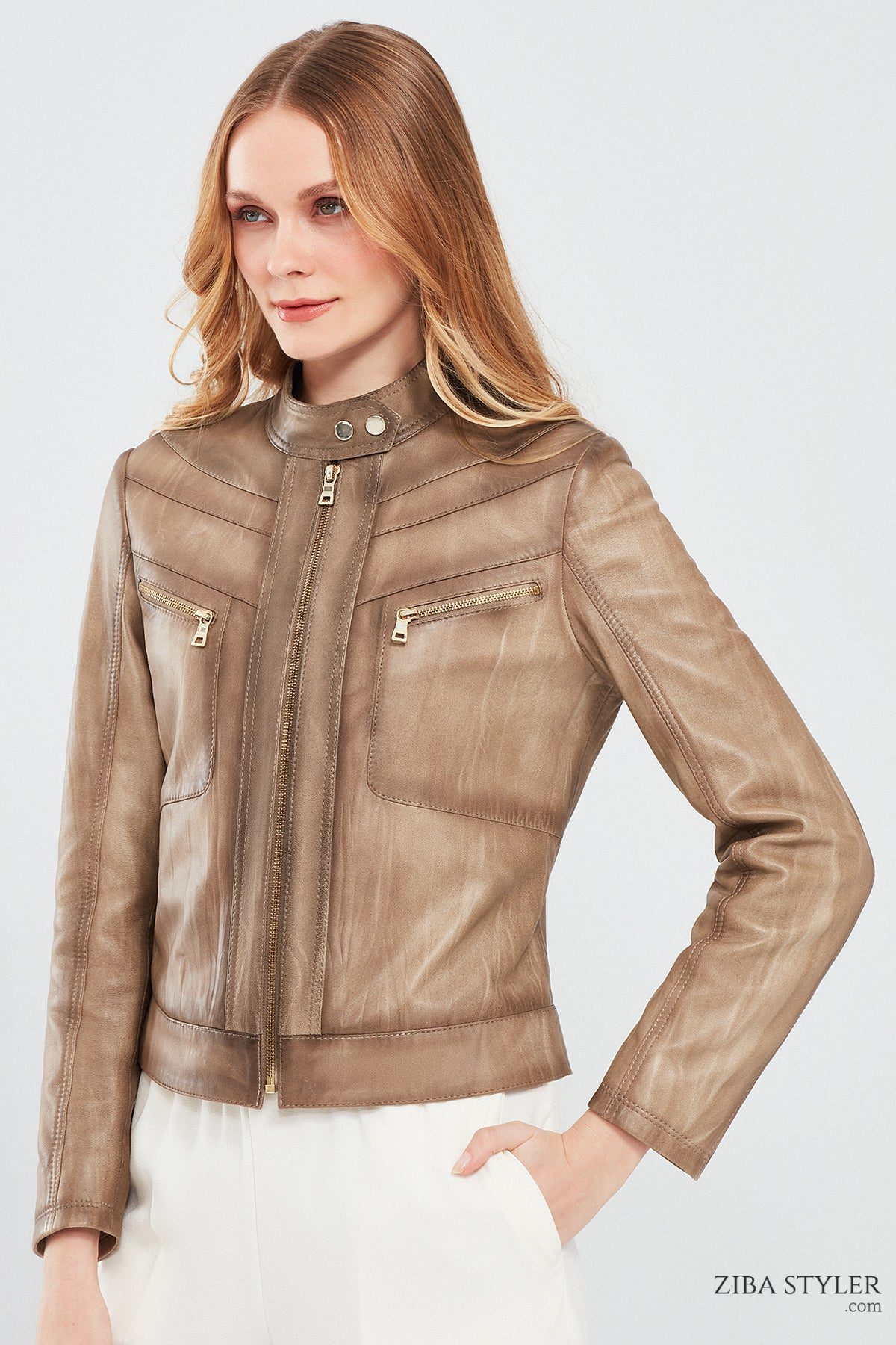کت چرم کوتاه طبیعی بژ زنانه جودی دری مد