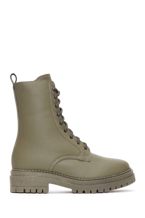 Kadın Haki Deri Postal Bot