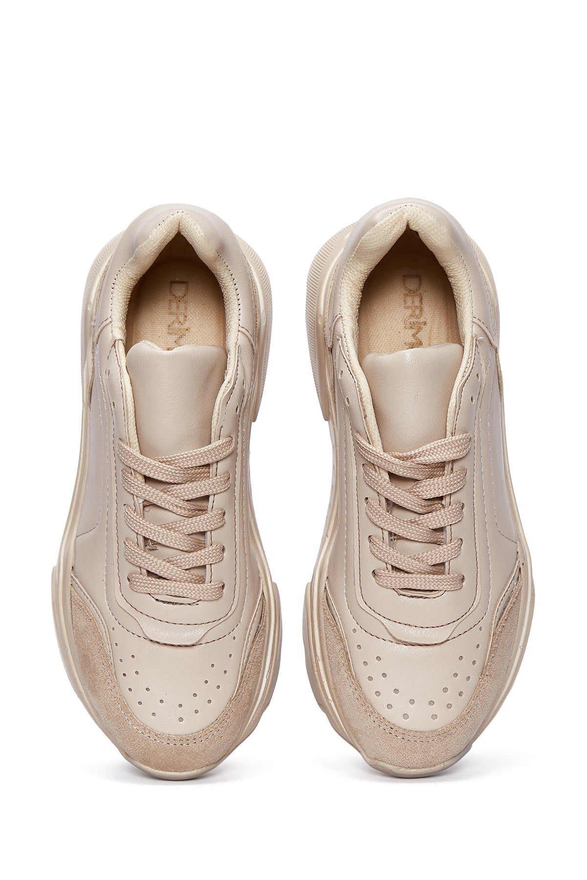 Kadın Bej Kalın Tabanlı Bağcıklı Sneaker