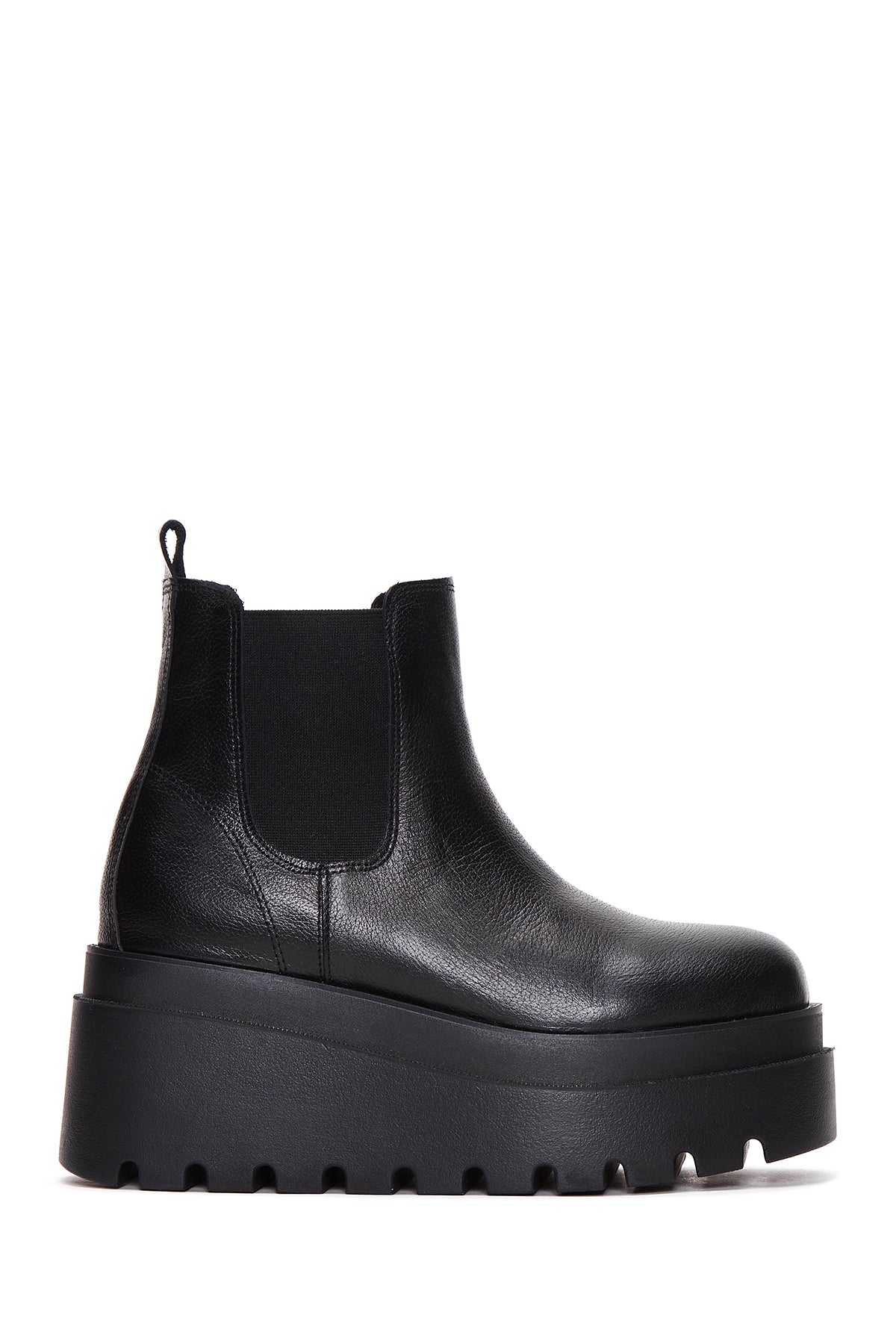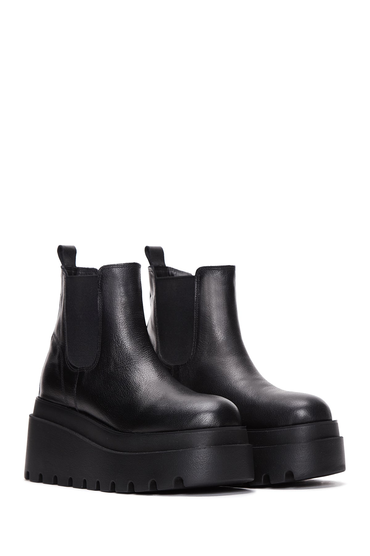 Kadın Siyah Dolgu Topuklu Deri Chelsea Bot