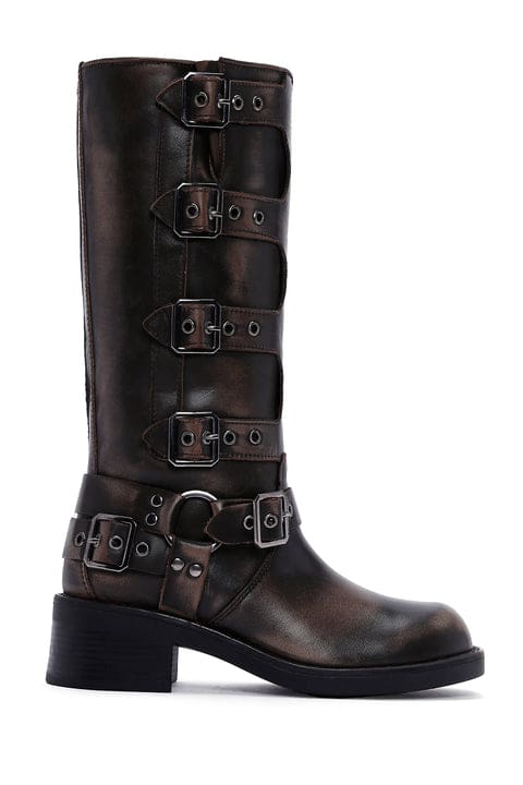 چکمه چرمی زنانه سگک دار طوسی دری مد