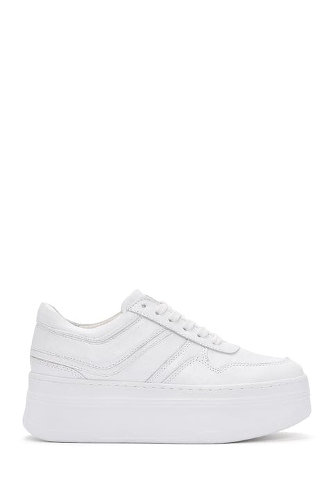 Kadın Beyaz Bağcıklı Kalın Tabanlı Deri Sneaker
