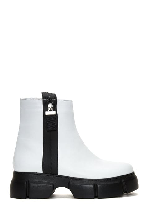 Kadın Beyaz Deri Fermuarlı Bot