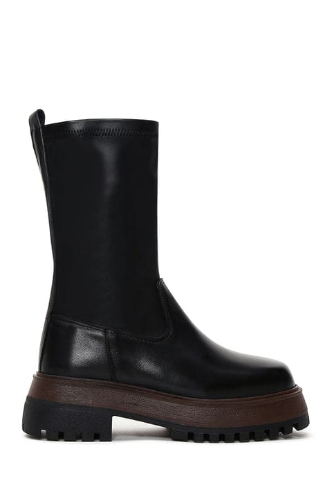 Kadın Siyah Fermuarlı Deri Postal Bot