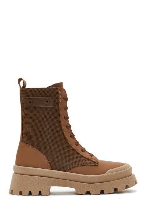 بوت چرم قهوه ای مایل به زرد زیپ دار دری مد