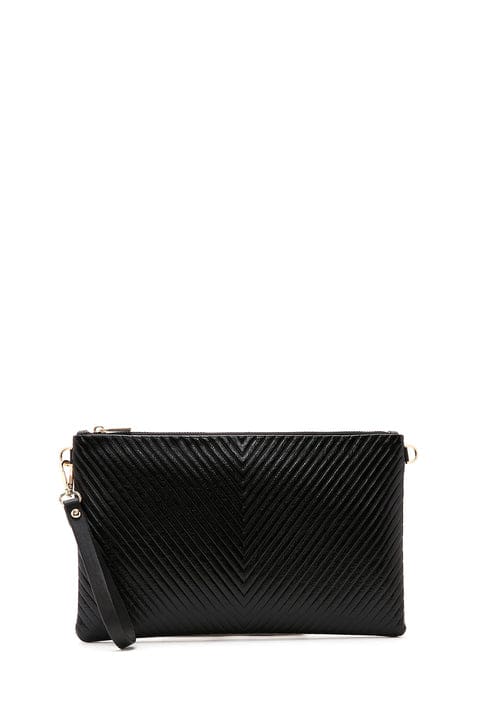 Kadın Siyah Uzun Zincir Askılı Metalik Portföy Çanta