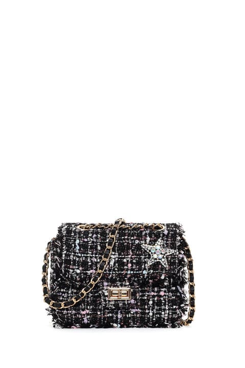 کیف دوشی زنانه بند بلند مشکی همراه با اکسسوری دری مد