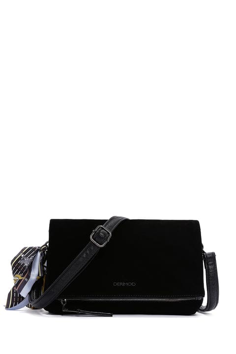 Kadın Siyah Uzun Askılı Aksesuar Detaylı Süet Çapraz Çanta