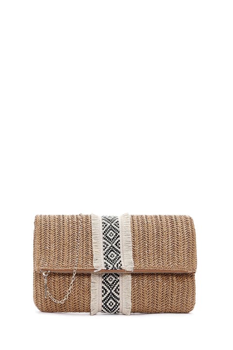 Kadın Kahverengi Uzun Askılı Hasır Portföy Çanta