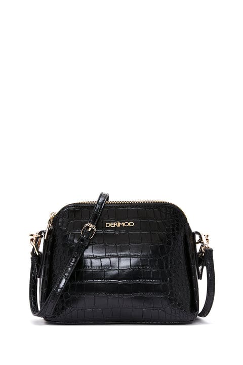 Kadın Siyah Uzun Askılı Kroko Desenli Çapraz Çanta
